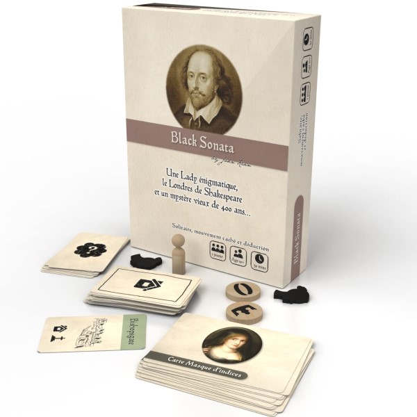 es un juego de deducción e investigación para jugar en solitario que plantea la búsqueda de la identidad de la Dama Oscura, que aparece en los sonetos de William Shakespeare.  Un misterio de más de 4 siglos de antigüedad que ha mantenido en vilo a los académicos de todas las épocas