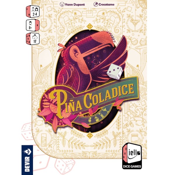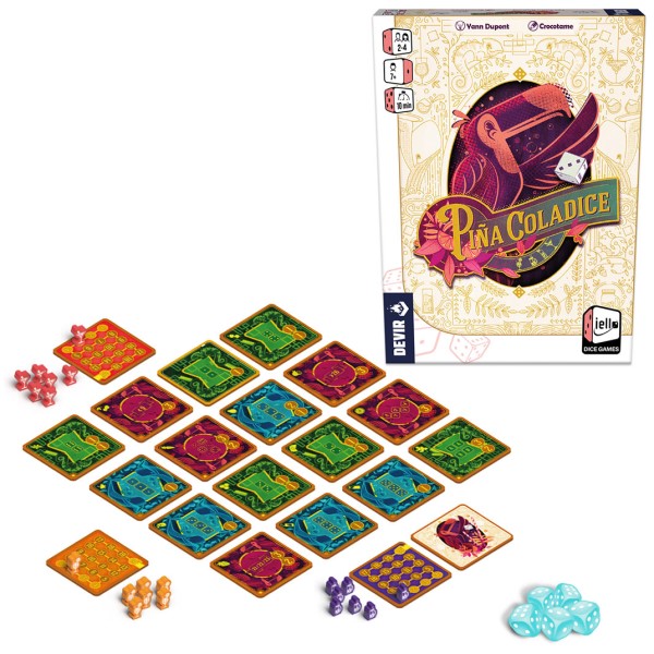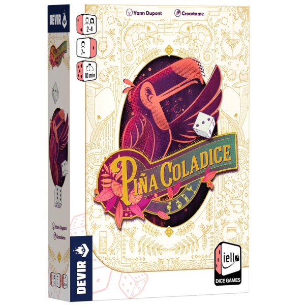 Piña Coladice es un juego de dados con una mecánica de relanzamientos al más puro estilo Piko Piko. La partida se va a desarrollar a lo largo de una serie de turnos en el que cada jugador lanzará cinco dados, disponiendo de dos opciones de relanzamiento en los que puede lanzar los dados que quiera manteniendo el valor del resto. Tras esto, el jugador colocará uno de sus marcadores en un posavasos cuyo patrón corresponda con los valores obtenidos en la tirada, anotándose una cantidad de puntos de victoria.